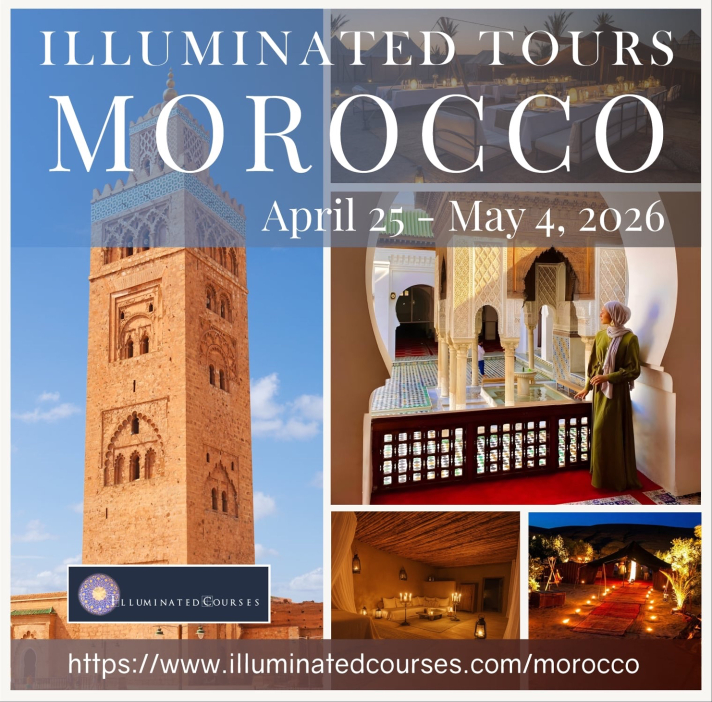 On our Morocco Illuminated Tours, you will learn about the spiritual teachings of the seven "friends of God", and how there is a profound connection to the spiritual legacy of the Prophet there. We will have in depth discussions about the role of religion in private and public realms, the baraka of calligraphy and traditional arts, and the impact of colonialism. Our Morocco tour features stays in traditional boutique hotels (Riads) which are interior garden homes that offer a serene retreat that beacons you to the inward.